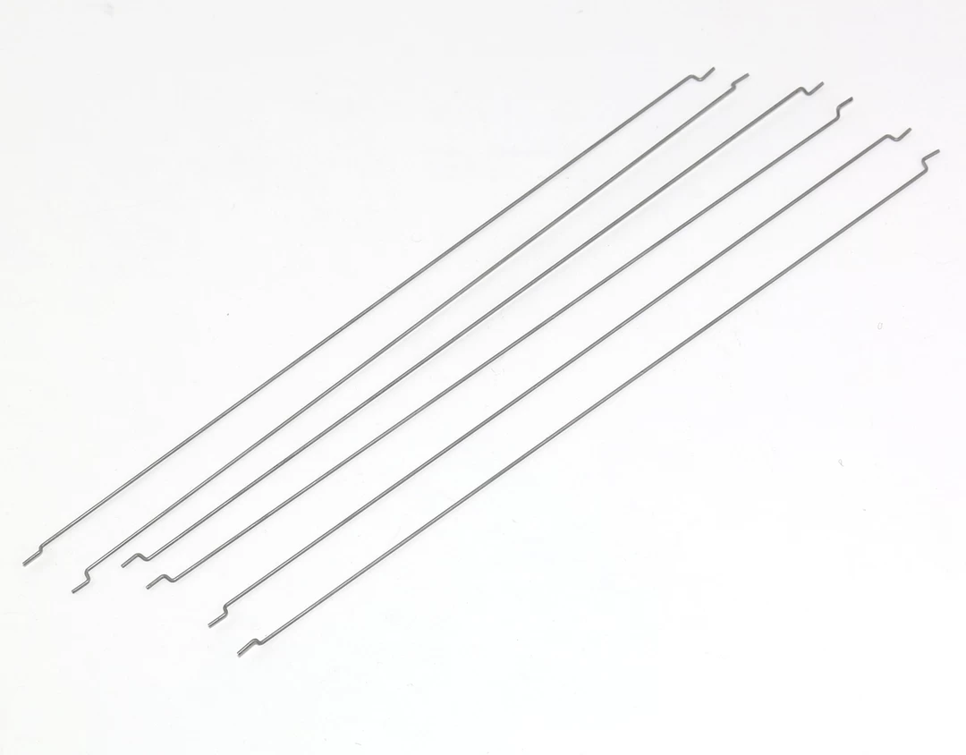 Includes 6pcs of .047 Piano Wire with Z-Bends on each side for servo horns. Cut in half to make 12x control rods!