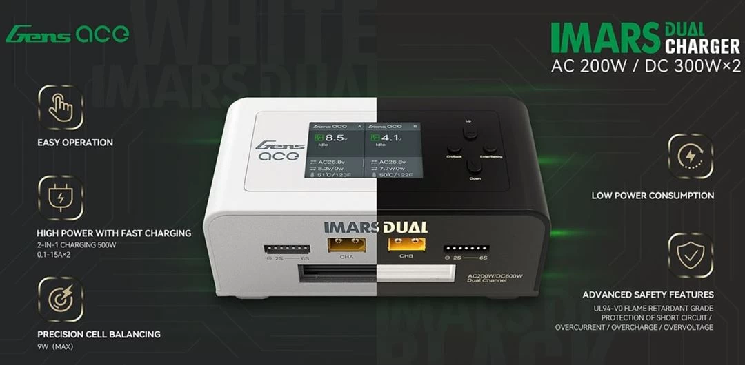 GensAce Imars Dual Channel AC200W/DC300W Balance Charger