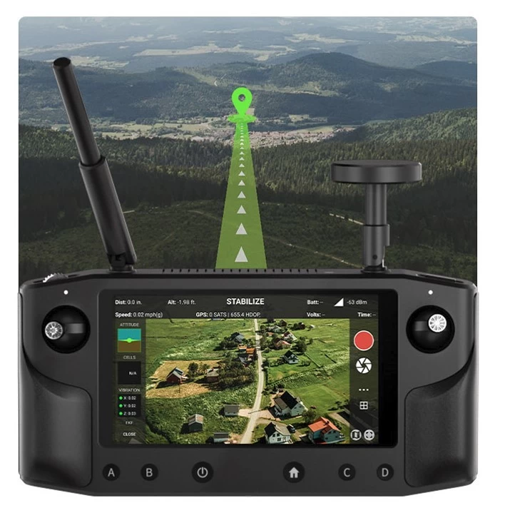 The CubePilot Herelink features a 5.5-inch full-color touchscreen that provides a clear and vibrant display of your drone’s telemetry and video feeds. This feature allows for quick access to critical flight data, including altitude, speed, and battery life, ensuring that you always know what’s happening with your device.