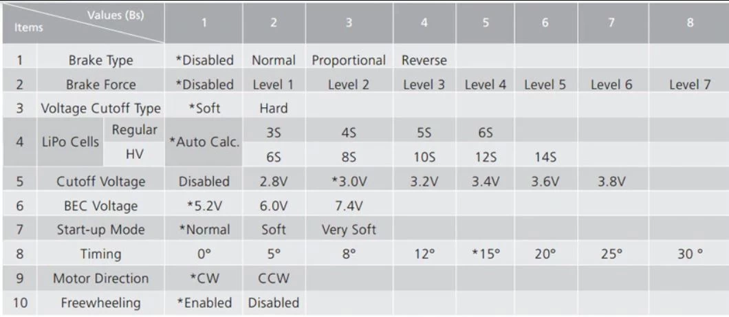 – New design brings exquisite look and good heat-dissipating performance. Imported components and the PCB (printed circuit board) with extremely low impedance adopted by the ESC guarantee great current endurance, excellent performance and high reliability. The ESC is available in high-voltage/regular version with different Amps.