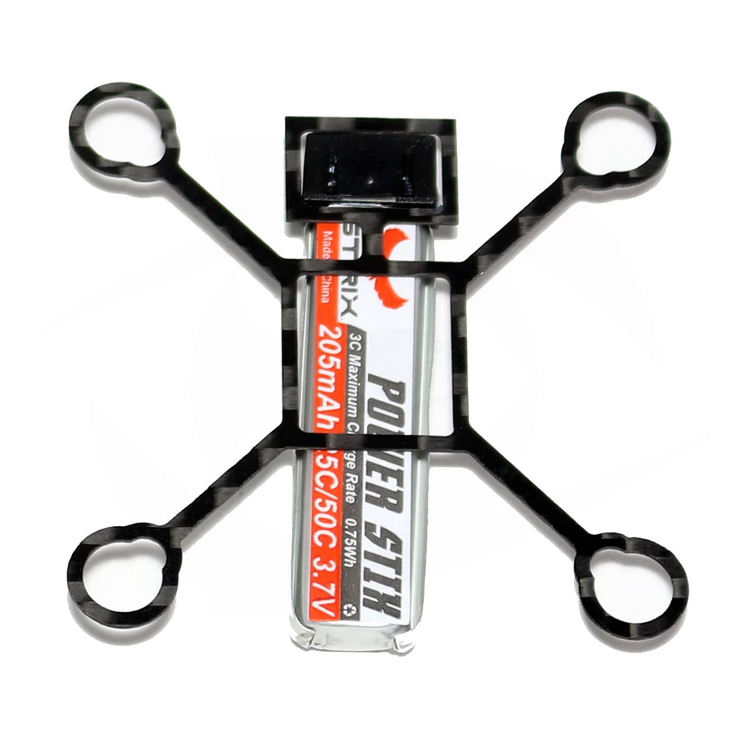 The carbon fiber motor reinforcement plate keeps the motor mounts from over flexing on impact, which is the main cause for broken frames. It is super easy to install with a tight, press fit over the stock motor mounts. It also features a square plate that keeps the battery from shifting in flight, but it can be clipped off if you don’t want it.