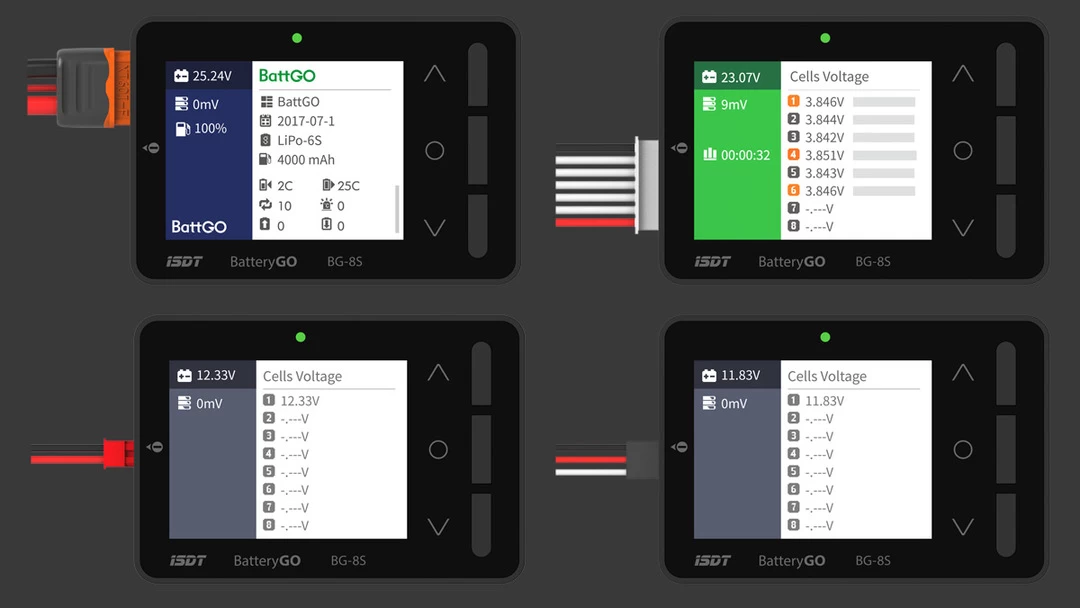 - Support XT60/XT60i, XH2.54 1-8S balance lead, XH 2.54 3pin, JST ETC to measure voltage.