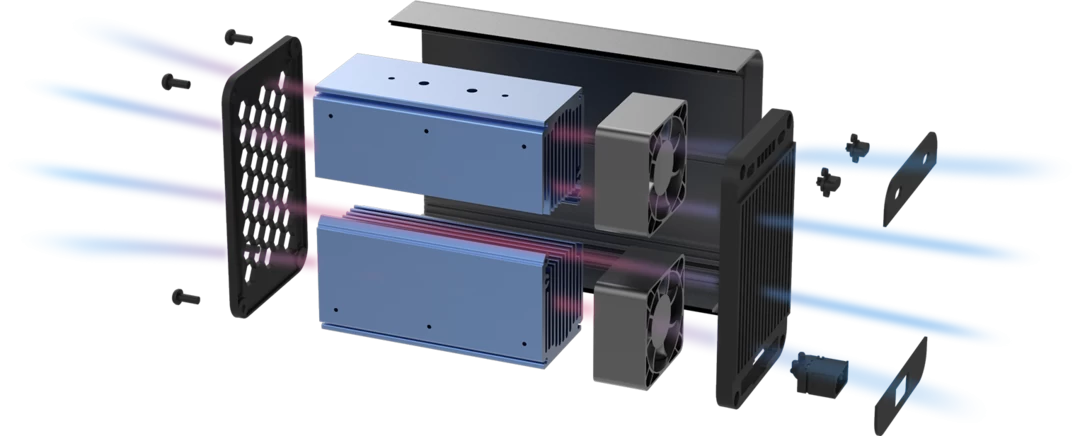 the passive heat dissipation module of pure aluminum closely fits with the heat source, greatly improved the heat conduction efficiency.