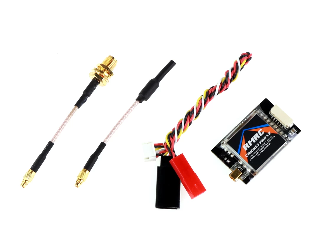 We have taken one of our most popular video transmitters and totally redesigned it to appeal to today’s pilot. Where other transmitters expect you to count blinks, beeps, or to hold your tongue just right, the Cricket PRO V2 is one of the easiest around to operate with a two button system and clearly visible LEDs! The heavy aluminum case has been removed and the SMA connector has been swapped for the increasingly popular and lightweight MMCX connection. The PRO V2 has retained the same, variable transmitter output along with the 100% US legal channels. It also comes equipped with officially licensed Smart Audio operation which allows the user to control the transmitter remotely. We know you will love the redesigned RMRC Cricket Pro V2!