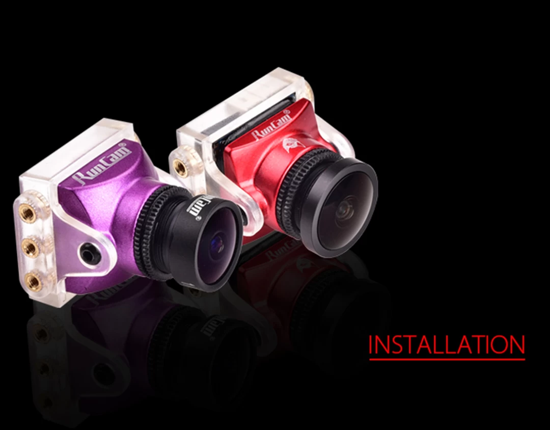 Clear plastic brackets for the RunCam Mirco Sparrow Pro and Micro Eagle FPV cameras.