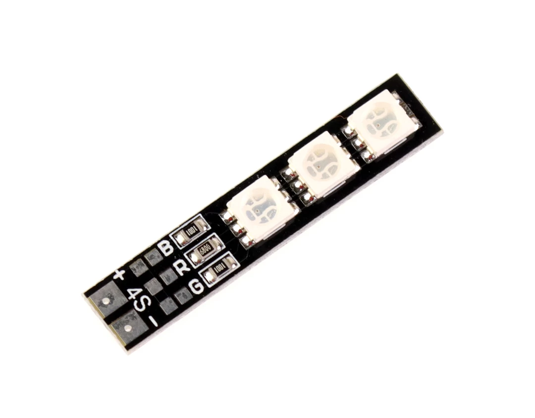 Introducing STRIX 3-4s LED Boards! These are perfect for adding LEDs to your aircraft without worrying about breaking off a dip switch box. Select color combinations by making solder bridges across the selector pads. Note that you must have at least one bridge for it to turn on.