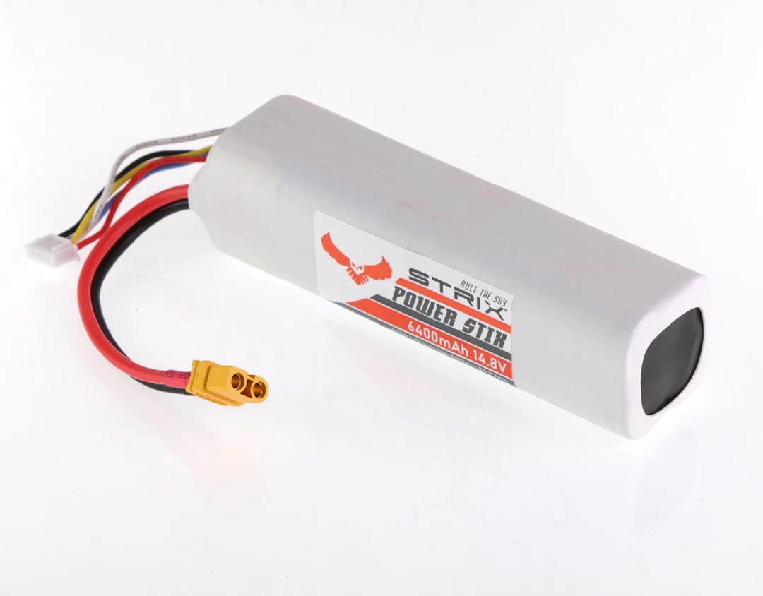 Introducing the Li-ion lineup of STRIX Power Stix battery packs! These batteries utilize the endurance of Li-ion 18650 cells for extra long flight times when compared to traditional Li-Po batteries used in the hobby industry. Aside from long flight times, lighter weight and smaller pack dimensions are welcome characteristics when extra payload and space are required. However, those benefits come at a cost in continuous amps, so plan your power setup and flights accordingly.