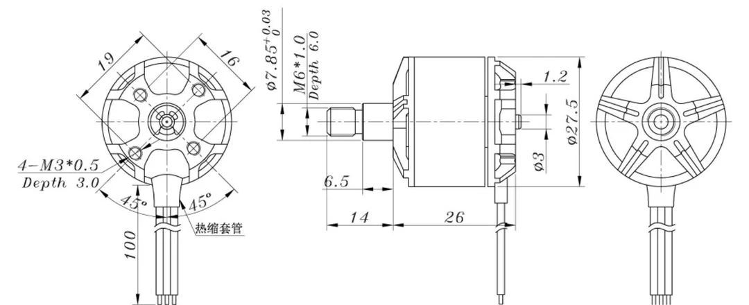This version of 2212 980KV motor is designed for multirotors, with an integrated shaft for direct installation of propellers.