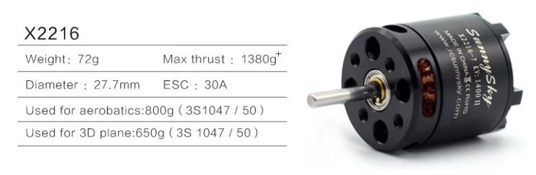 | Max Continuous Current | 24A/30s | Weight for training airplane | 800g (3S 10471050) |