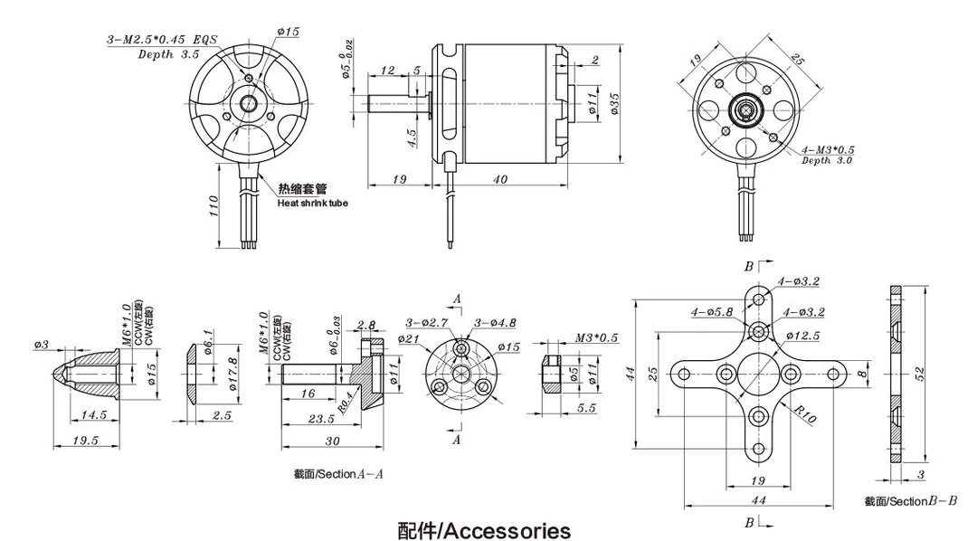 X series uses customized NMB mini bearings imported from Japan, which provide longer life, quiet and stable operation of these motors.